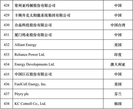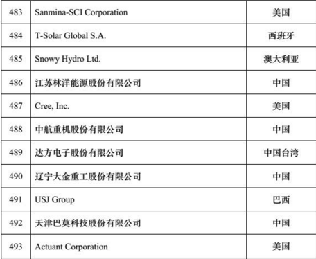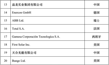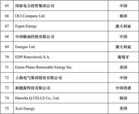 2016“全球新能源企業(yè)500強(qiáng)”榜單
