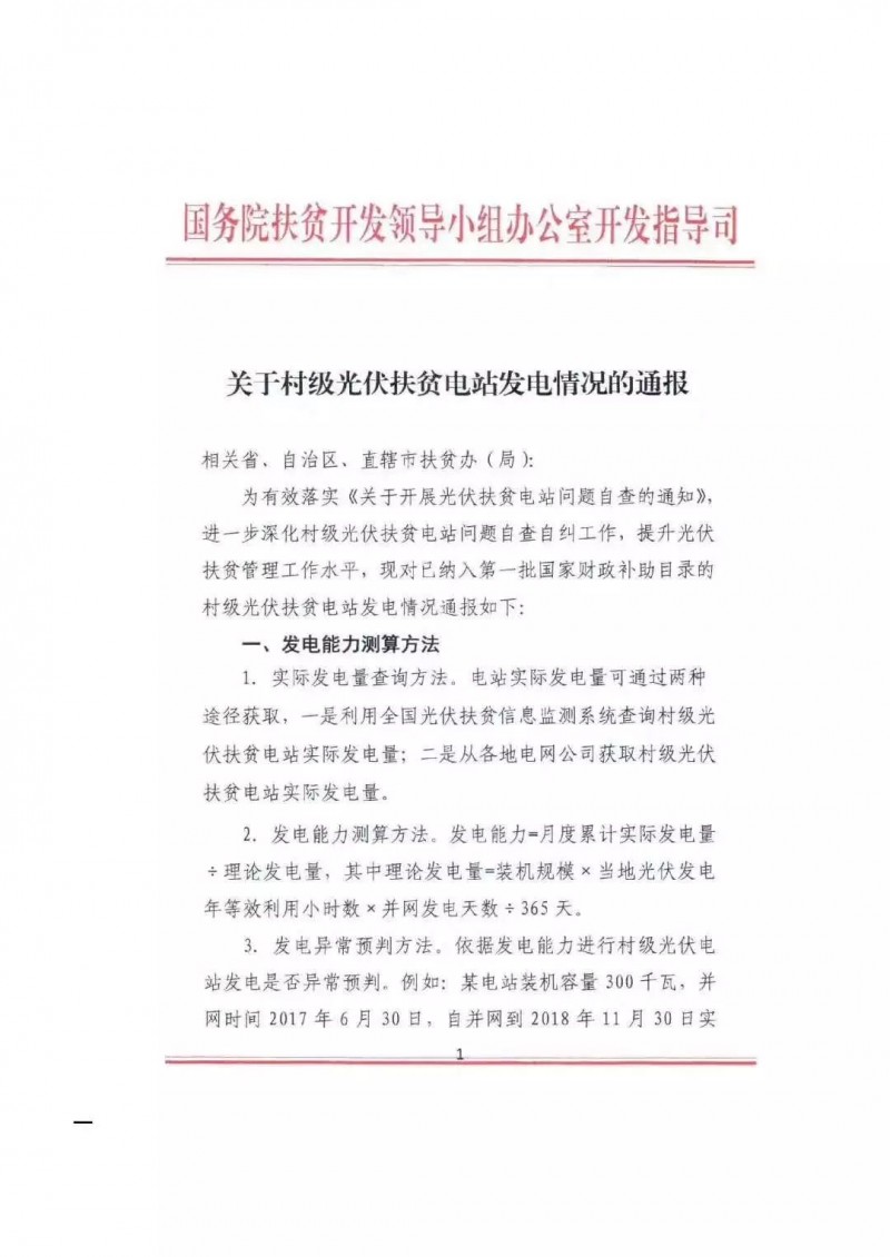 4月1日,國(guó)務(wù)院扶貧辦開(kāi)發(fā)指導(dǎo)司發(fā)布了《關(guān)于村級(jí)光伏扶貧電站發(fā)電情況的通報(bào)》。