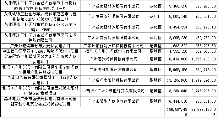 4月3日,廣州發(fā)改委發(fā)布了關(guān)于下達(dá)2019年(第一批)太陽能光伏發(fā)電項(xiàng)目補(bǔ)貼資金(直接支付部分)安排計(jì)劃的通知,共計(jì)33個(gè)項(xiàng)目,補(bǔ)貼資金27,988,123.35元。