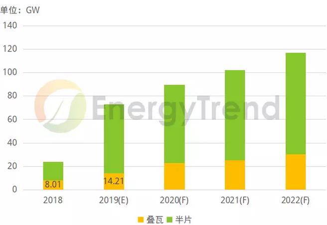 圖:2018年——2022年疊瓦與半片組件的產(chǎn)能預測