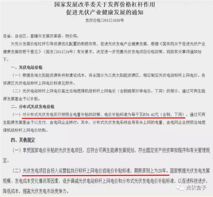 小盒子在這里可以明確的告訴大家:光伏補貼原則上補貼20年,這個是有文件說明的。