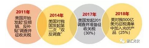 中國(guó)與美國(guó)的光伏貿(mào)易摩擦淵源已久。2011年至今已經(jīng)4次,如下圖所示。