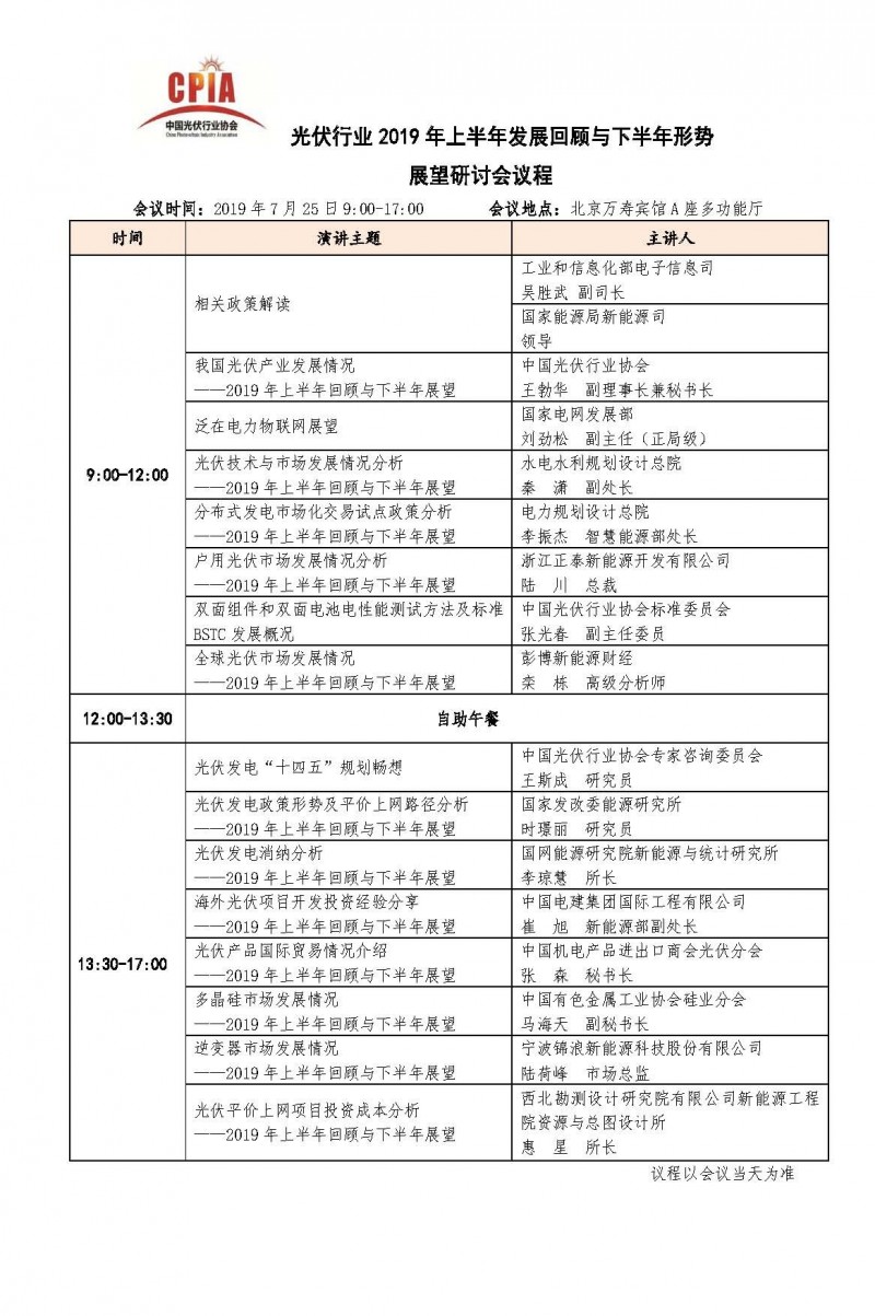 “回顧展望會”最新議程公布,等待您的到來~ 光伏產(chǎn)業(yè)網(wǎng)訊 發(fā)布日期:2019-07-24 核心提示: “回顧展望會”最新議程公布,等待您的到來~ 由中國光伏行業(yè)協(xié)會主辦的 光伏行業(yè)2019年上半年發(fā)展回顧與下半年形勢展望研討會 將于7月25日在北京萬壽賓館舉辦。 最新日程公布如下: