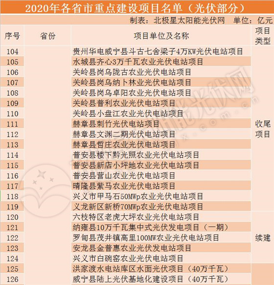 廣西、廣東、陜西、山西、安徽、貴州6個省份2020年重點光伏建設(shè)項目均有涉及,尤其是貴州省入選十大千億級工業(yè)產(chǎn)業(yè)項目的50個光伏項目中,“光伏+”項目占比甚至達(dá)到70%以上。