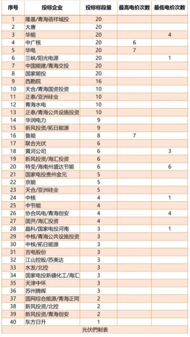 5月24日,青海2020年2GW光伏競價項目開標(biāo),共40家企業(yè)/聯(lián)合體參與了此次競爭。