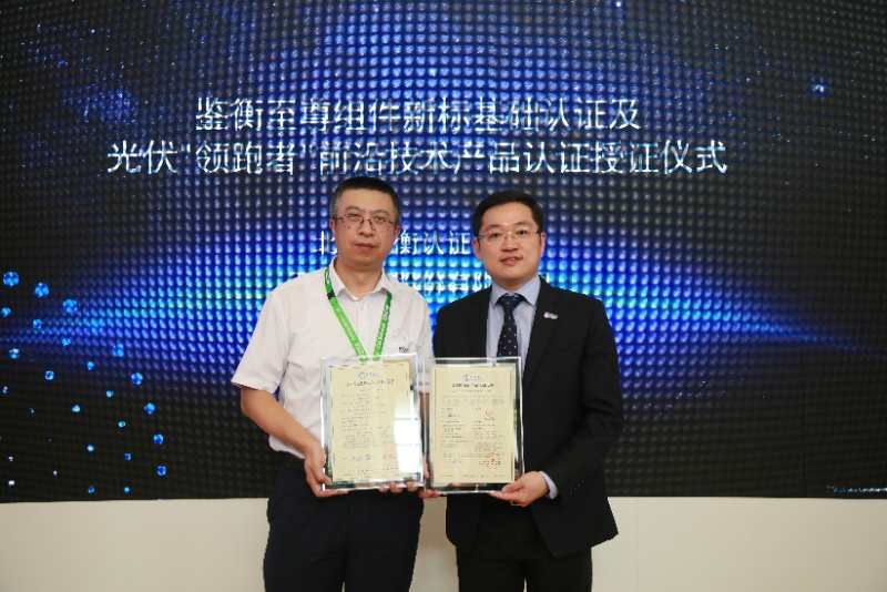 600W+光伏創(chuàng)新開放創(chuàng)新生態(tài)聯(lián)盟成員,北京鑒衡認(rèn)證中心事業(yè)部總經(jīng)理周罡先生,天合光能組件價(jià)值群質(zhì)量部高級總監(jiān)趙夢宇先生共同參與了頒證儀式。至此,在今年4月榮獲德國萊茵 TUV 頒發(fā)的 IEC 61215光伏組件性能標(biāo)準(zhǔn)和 IEC 61730光伏組件安全標(biāo)準(zhǔn)兩項(xiàng)證書后,至尊組件又?jǐn)孬@了這一業(yè)內(nèi)重量級認(rèn)證,進(jìn)一步奠定了其行業(yè)新標(biāo)準(zhǔn)地位。