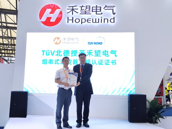 8日,TUV北德亞太區(qū)首席執(zhí)行官兼大中華區(qū)董事長(zhǎng)任駿先生在深圳市禾望科技有限公司展臺(tái)為其頒發(fā)組串式逆變器安規(guī)認(rèn)證證書。