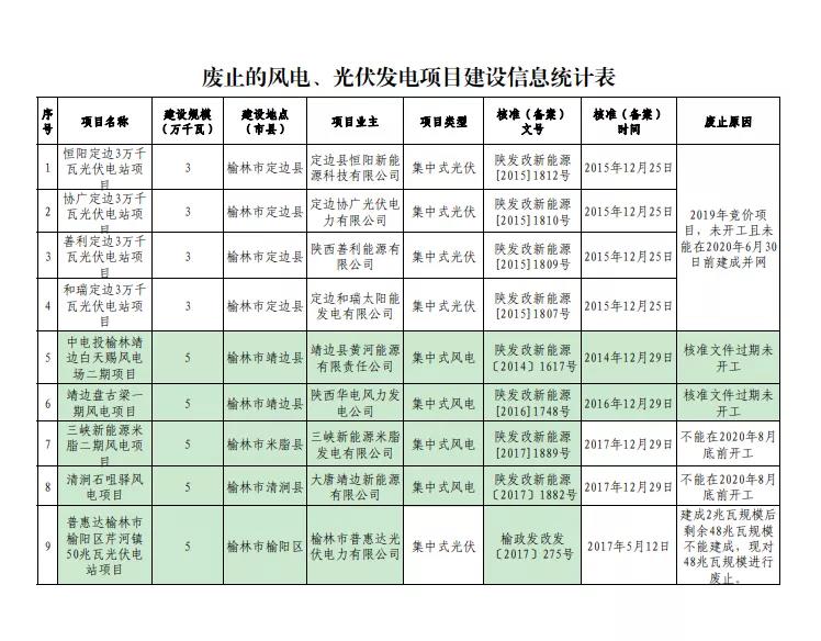 5個光伏項目擬被廢止!陜西榆林市公示廢止風(fēng)電、光伏項目統(tǒng)計表