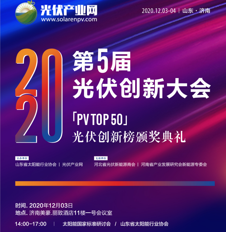由山東省太陽能行業(yè)協(xié)會和光伏產(chǎn)業(yè)網(wǎng)聯(lián)合發(fā)起組織的2020第五屆光伏創(chuàng)新大會(PVIC2020)將于2020年12月3-4號在山東濟南召開,同期將舉辦「PVTOP50」2020光伏創(chuàng)新榜頒獎典禮。PVIC2020以“創(chuàng)新賦能 共迎平價”為年度主題,緊扣市場熱點,圍繞光伏行業(yè)前瞻性話題和熱點領(lǐng)域進行深入探討和交流,共同推動光伏產(chǎn)業(yè)的創(chuàng)新與可持續(xù)健康發(fā)展!共同迎接平價時代的到來!