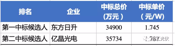 中標公示日期:2021年5月7日第一中標人:合肥晶澳太陽能科技有限公司中標總價:199538671.8元,折合單價:1.735元/W