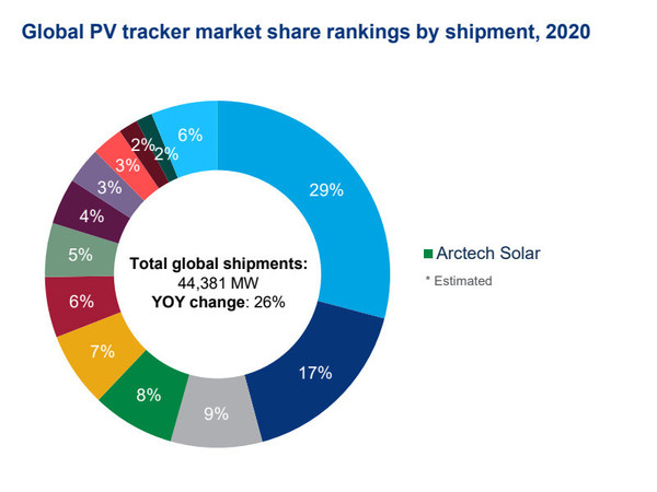 2020全球光伏跟蹤系統(tǒng)出貨量榜單發(fā)布,中信博穩(wěn)居前四