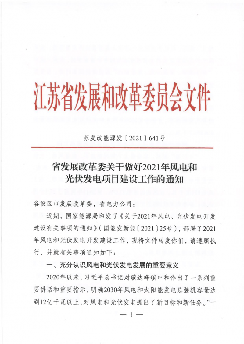 7月8日,江蘇省發(fā)改委印發(fā)《關(guān)于做好2021年風電和光伏發(fā)電項目建設(shè)工作的通知》,就光伏、風電項目建設(shè)方面給出指導(dǎo)意見。