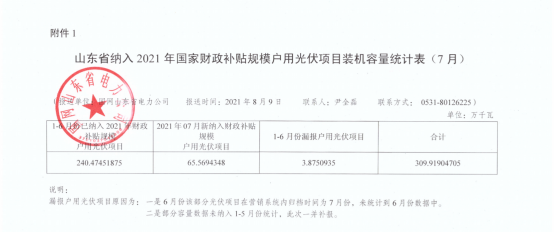 8月13日,國(guó)網(wǎng)山東省電力公司公布了全省7月納入2021年國(guó)家財(cái)政補(bǔ)貼規(guī)模戶用光伏項(xiàng)目清單。