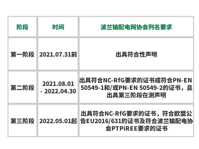 面對市場的快速發(fā)展,波蘭在歐洲發(fā)電設(shè)備并網(wǎng)條件之上,增加了更為嚴(yán)格的要求,波蘭電網(wǎng)按時(shí)間分階段提出了如下新增要求:
