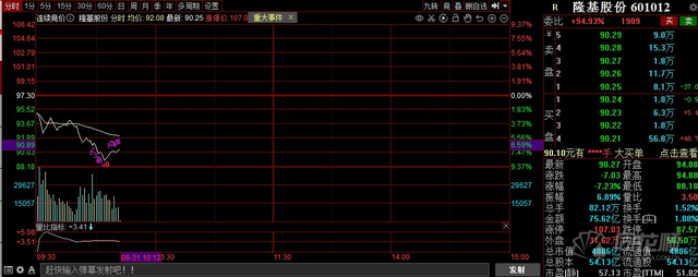 8月31日開盤后,隆基股份低開低走,一度跌超9%。截至發(fā)稿,報(bào)90.27元,跌7.23%。