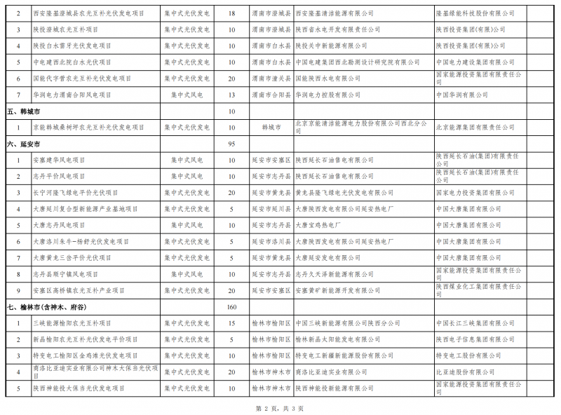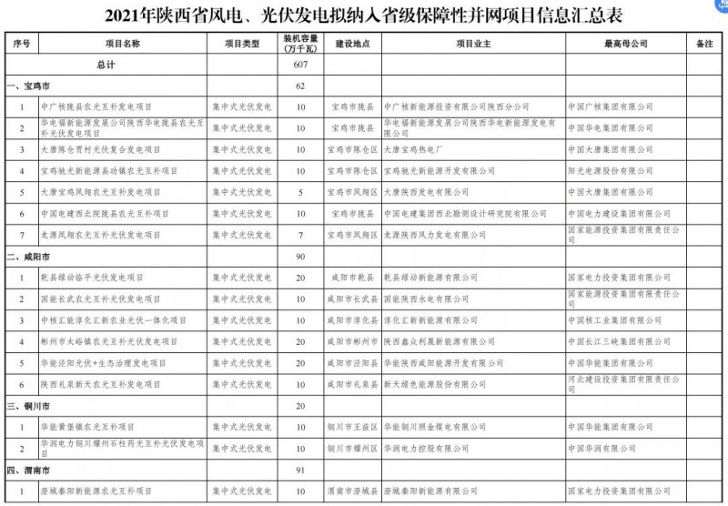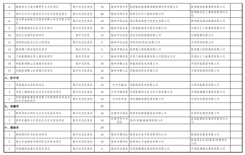 陜西6.07GW光伏、風電項目名單公布:國家能投、華能、國家電投、三峽領銜