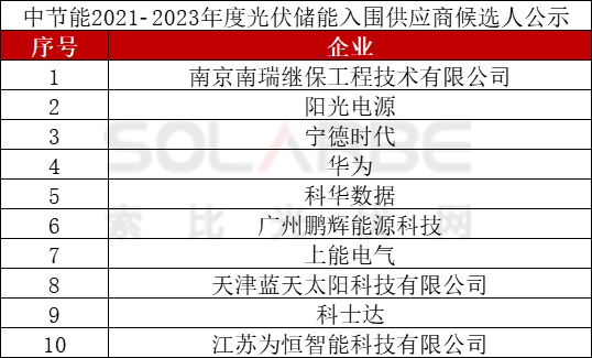 陽光、寧德時(shí)代、華為、上能等10家入圍!中節(jié)能2021-2023年度光伏儲(chǔ)能入圍供應(yīng)商公示