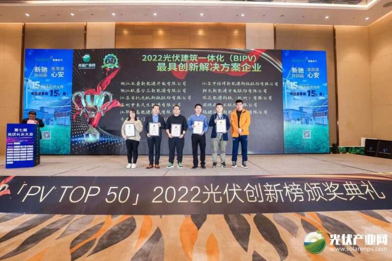 11月21日,「PV TOP 50」2022光伏創(chuàng)新榜頒獎(jiǎng)典禮(「PV TOP 50」2022光伏行業(yè)創(chuàng)新力企業(yè)50強(qiáng)榜單發(fā)布)在浙江·杭州圓滿落下帷幕!