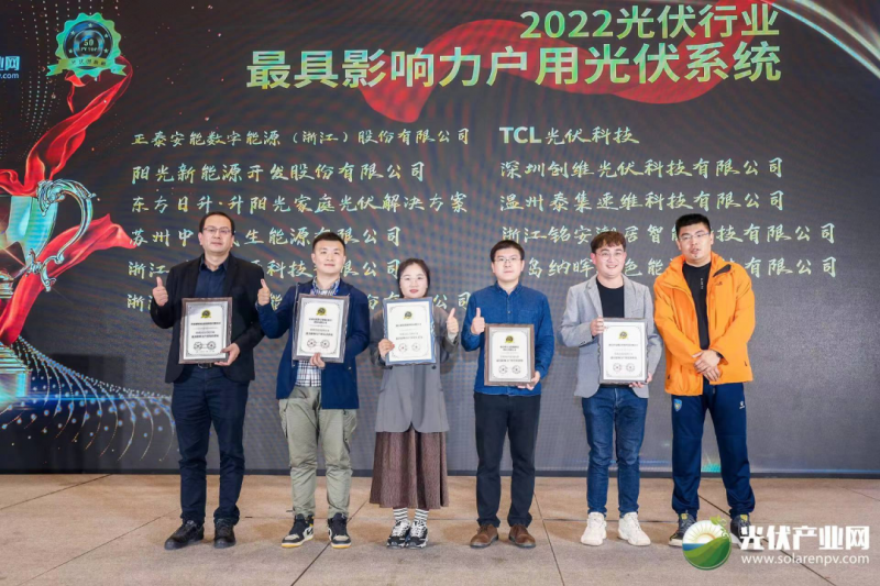 晚會最后還特別給浙江省太陽能光伏行業(yè)協(xié)會沈福鑫、中國新能源電力投融資聯(lián)盟彭澎、山東省太陽能行業(yè)協(xié)會張曉斌、河北省光伏新能源商會馬獻(xiàn)立、河南省產(chǎn)業(yè)發(fā)展研究會新能源專委會姚峰頒發(fā)了2022分布式光伏推廣杰出貢獻(xiàn)獎(jiǎng)。