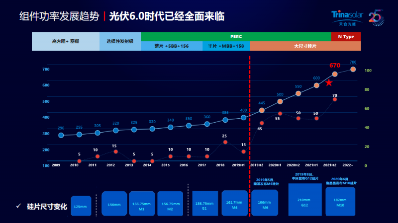 天合光能一直專注太陽能應(yīng)用技術(shù)的研發(fā),多次刷新組件效率的世界紀(jì)錄,2020年推出了210大尺寸組件產(chǎn)品。在市場需求的不斷推動下,基于組件功率發(fā)展趨勢,天合超高功率組件價(jià)值凸顯,引領(lǐng)光伏行業(yè)進(jìn)入大尺寸、高功率組件時代。