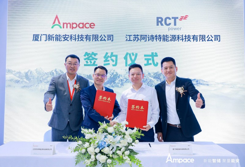 展會期間,Ampace新能安還相繼與江蘇阿詩特能源科技有限公司、廣東銳頂電力技術(shù)有限公司、上海聯(lián)科熙和能源科技有限公司、維諦技術(shù)有限公司簽訂戰(zhàn)略合作協(xié)議(按簽約時間排序)。