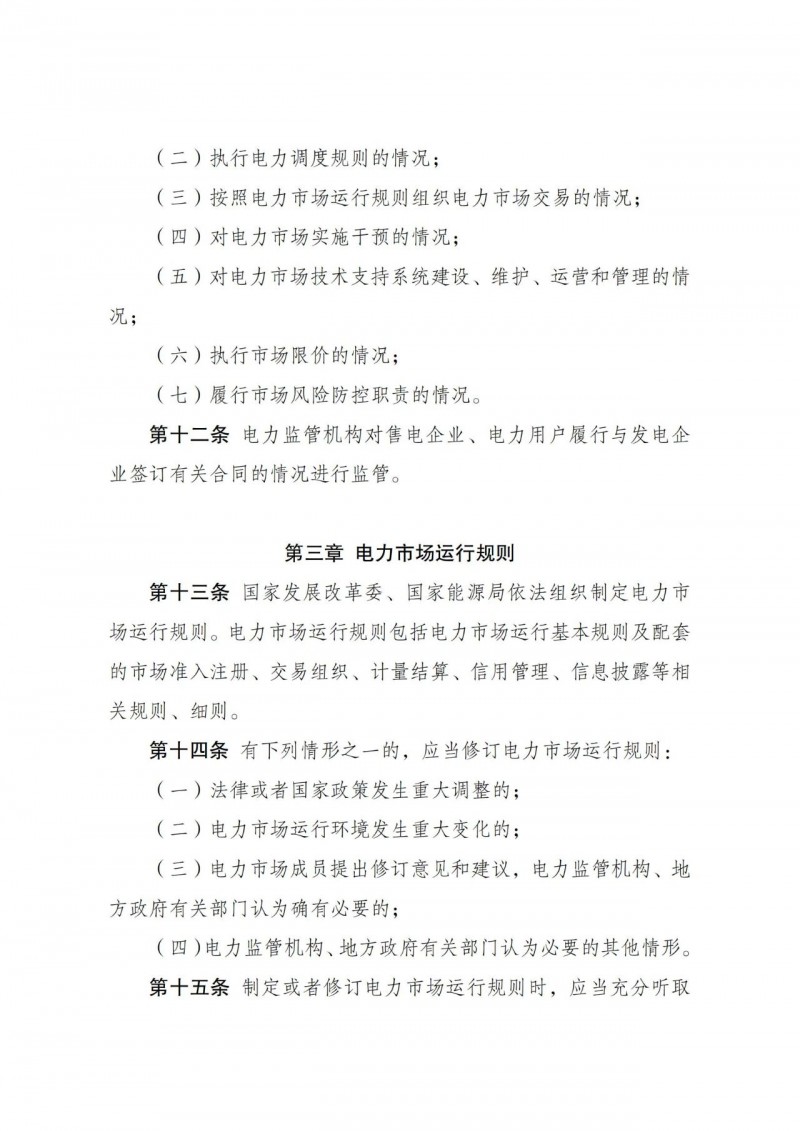 (四)執(zhí)行電力市場運行規(guī)則的情況;