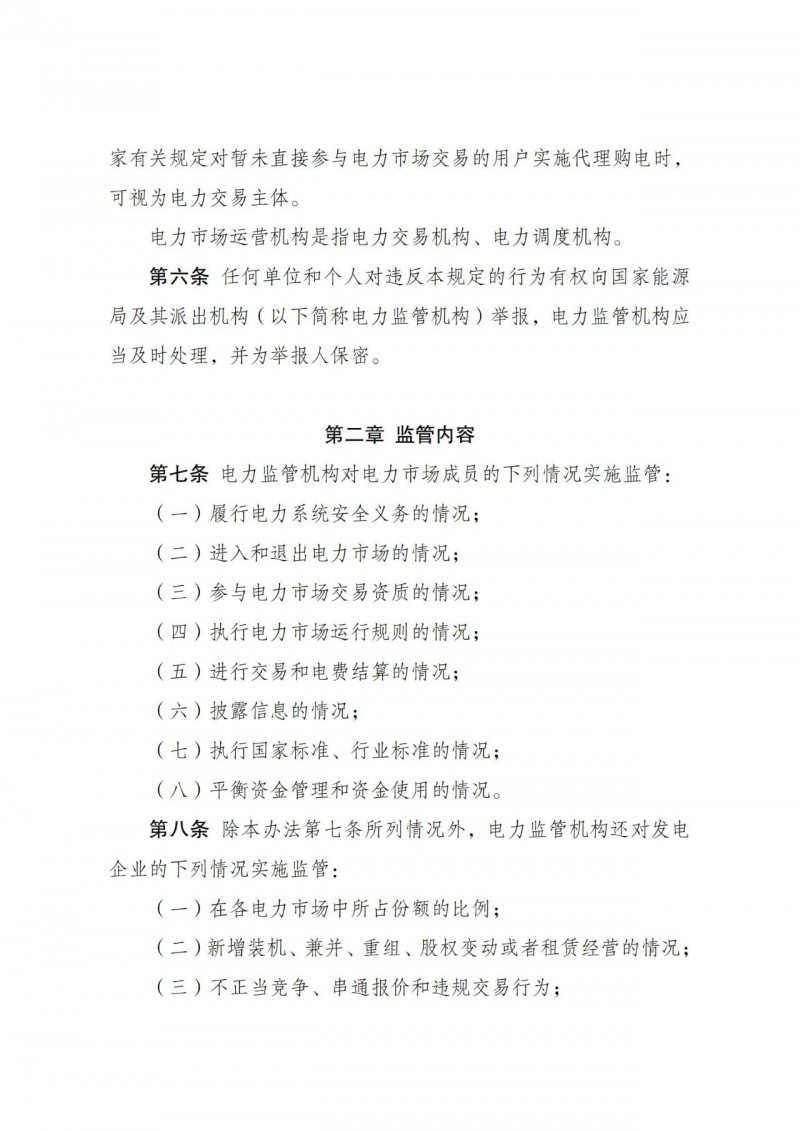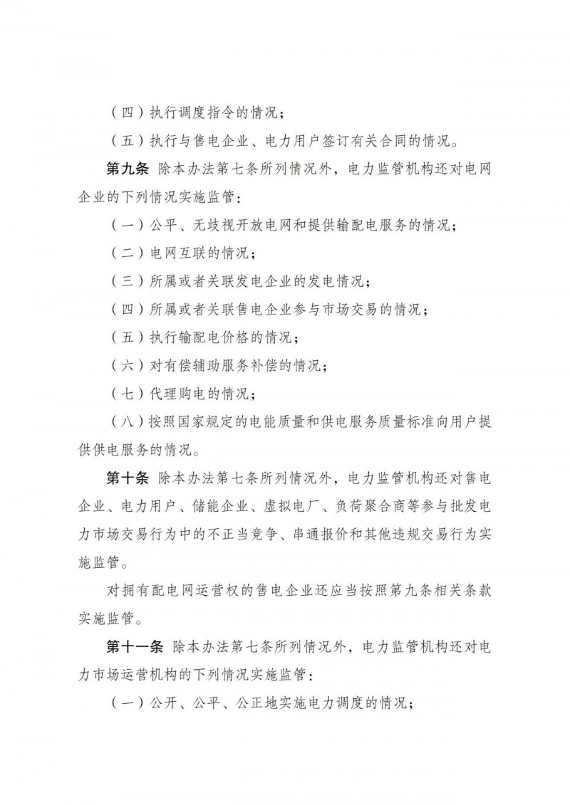 電力監(jiān)管機構(gòu)還對售電企業(yè)、電力用戶、儲能企業(yè)、虛擬電廠、負荷聚合商等參與批發(fā)電力市場交易行為中的不正當(dāng)競爭、串通報價和其他違規(guī)交易行為實施監(jiān)管。