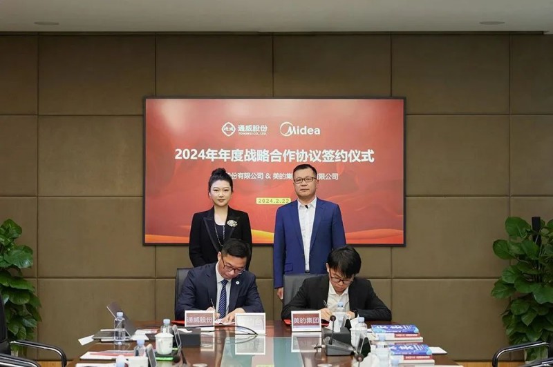 而美的在光伏領域的動作還不止于此,2月22日,美的集團與通威股份正式簽署2024年年度戰(zhàn)略合作協(xié)議。