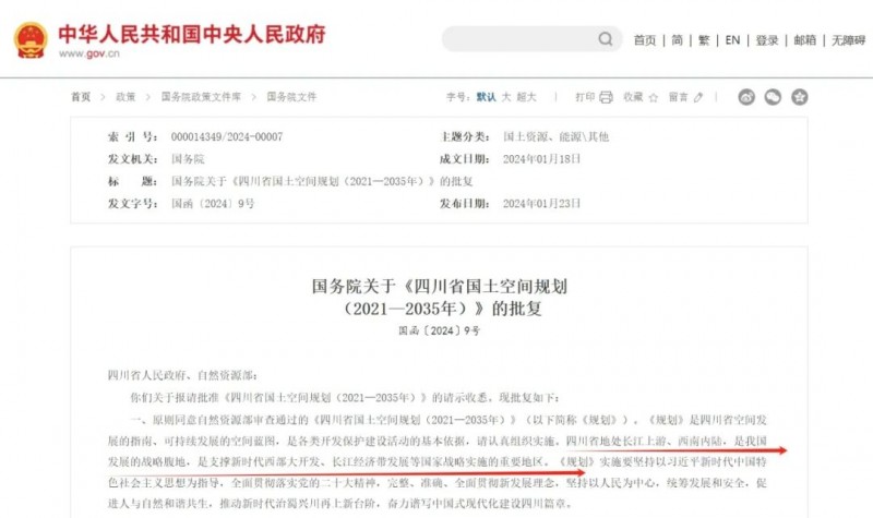 四川:在眾多城市之中,最引人注目的非“戰(zhàn)略腹地”四川莫屬。2024年初,國務(wù)院批復(fù)《四川省國土空間規(guī)劃(2021—2035年)》,明確四川是我國發(fā)展的戰(zhàn)略腹地,是支撐新時代西部大開發(fā)、長江經(jīng)濟帶發(fā)展等國家戰(zhàn)略實施的重要地區(qū)。