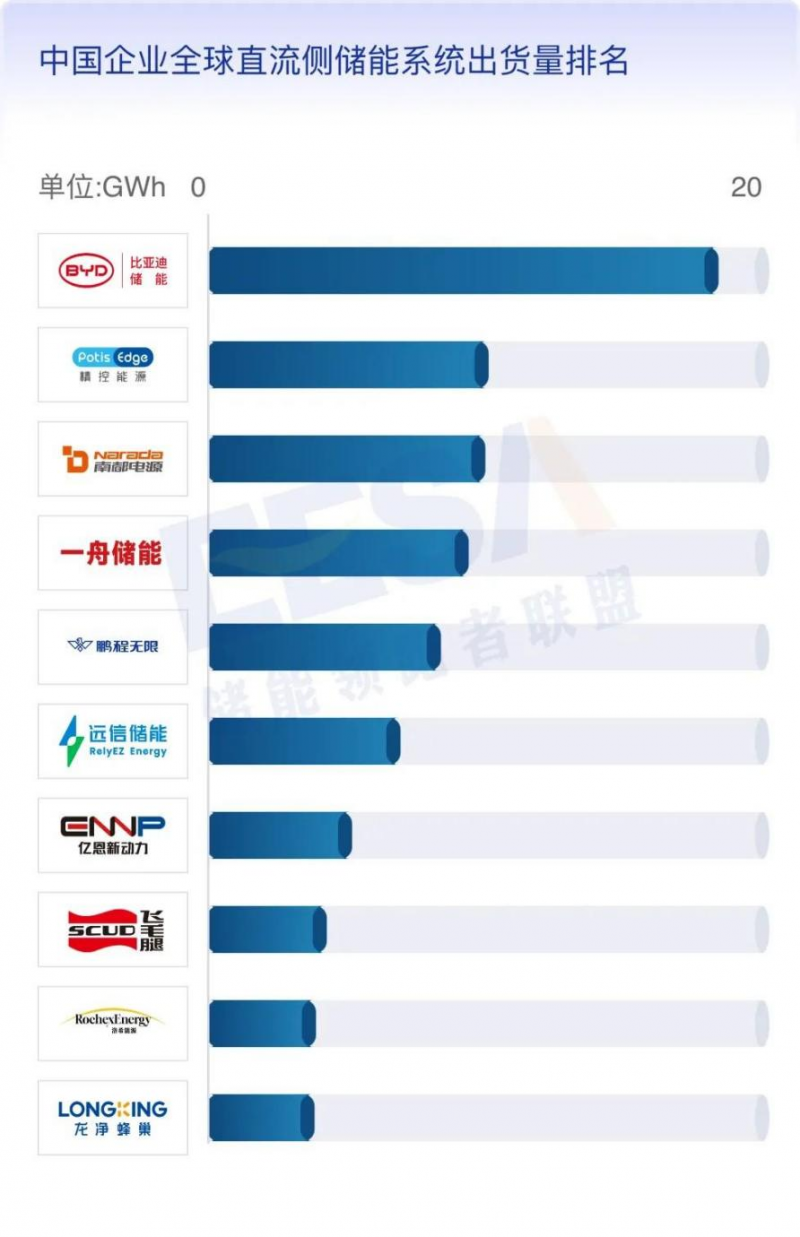 3、中國企業(yè)全球直流側(cè)儲(chǔ)能系統(tǒng)出貨量排名