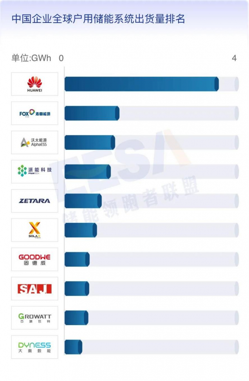 4、中國企業(yè)全球戶用儲(chǔ)能系統(tǒng)出貨量排名