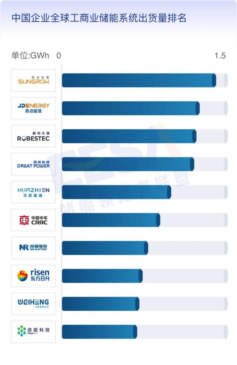 5、中國企業(yè)全球工商業(yè)儲(chǔ)能系統(tǒng)出貨量排名