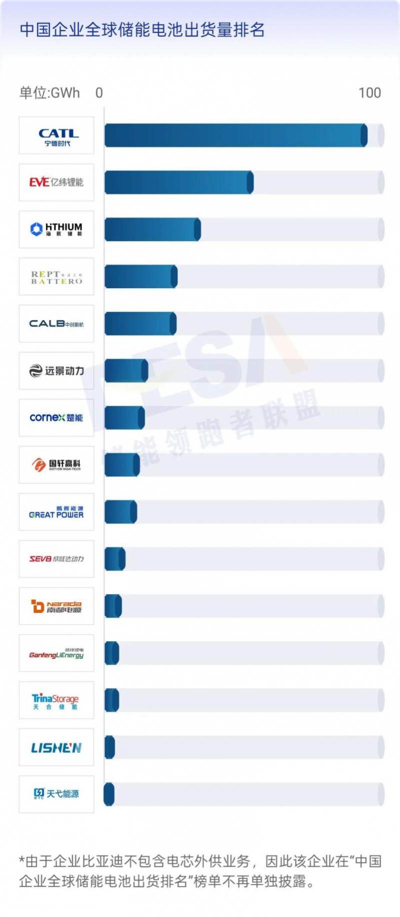 (3)新型儲(chǔ)能技術(shù)即指除抽水蓄能以外的其他儲(chǔ)能技術(shù),儲(chǔ)能電池統(tǒng)計(jì)范圍涵蓋直接與電網(wǎng)/電力系統(tǒng)形成能量交換應(yīng)用的電池,基站&數(shù)據(jù)中心用電池不包含在內(nèi),將作為獨(dú)立榜單披露。