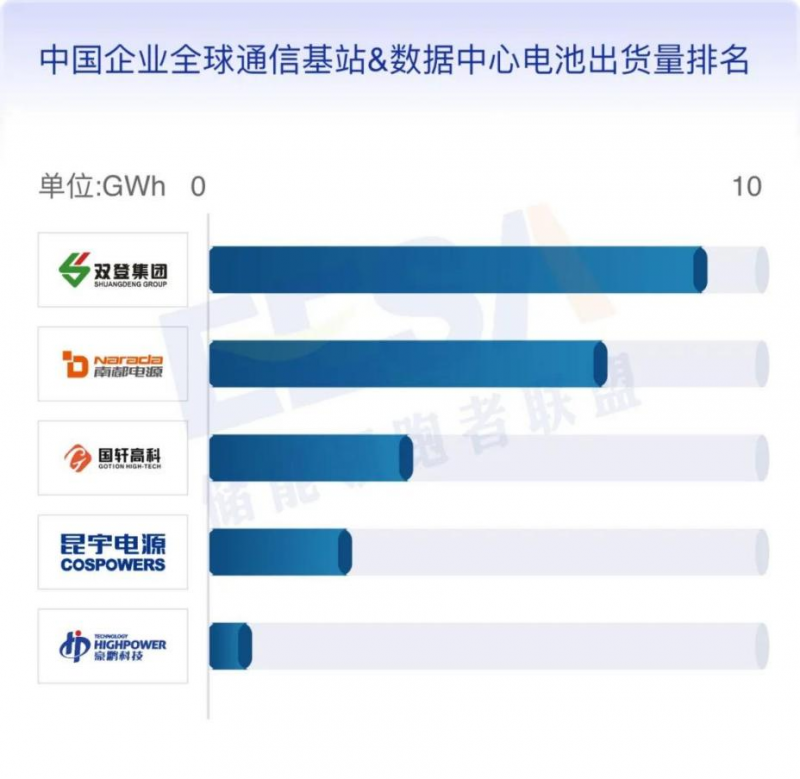 9、中國企業(yè)全球通信基站&數(shù)據(jù)中心電池出貨量排名