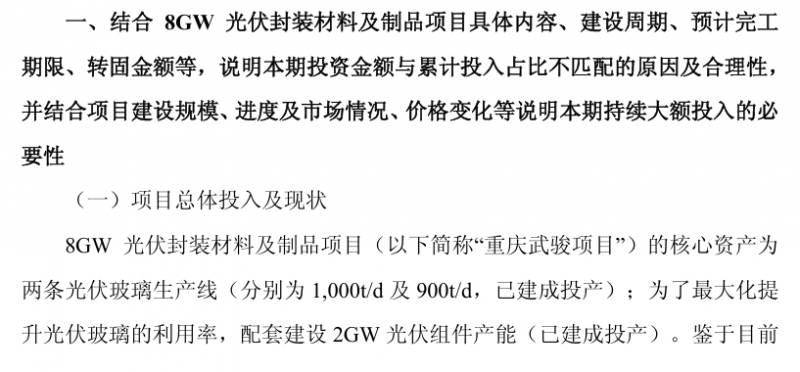除此之外,和邦生物還暫停了6GW光伏組件產(chǎn)線。公告指出,8GW光伏封裝材料及制品項(xiàng)目的核心資產(chǎn)兩條光伏玻璃生產(chǎn)線(已建成投產(chǎn));為了最大化提升光伏玻璃的利用率,配套建設(shè)2GW光伏組件產(chǎn)能(已建成投產(chǎn))。鑒于目前光伏行業(yè)的整體市場(chǎng)情況,公司秉承審慎原則,已決定暫停剩余6GW光伏組件生產(chǎn)線建設(shè)。