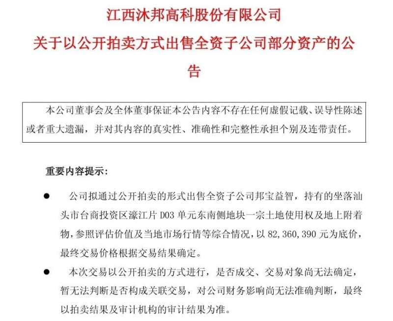 就在消息發(fā)布的兩天前,這家跨界光伏的玩具大佬,已經(jīng)釋放出“賣(mài)身自救”的明確信號(hào):公司擬通過(guò)公開(kāi)拍賣(mài)方式,出售全資子公司邦寶益智名下的一宗土地及地上建筑。