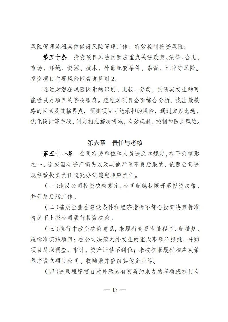 風(fēng)電光伏項目總投資20億元以內(nèi)自建項目、10億元以內(nèi)并購項目施行分級分類決策機制。