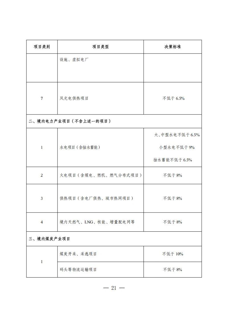 在具體的收益率要求方面,風(fēng)電光伏及大型風(fēng)光水火儲基地等項目,資本金內(nèi)部收益率投資決策標準不低于6.5%;屋頂分布式光伏不低于7%;儲能項目不低于6.5%。