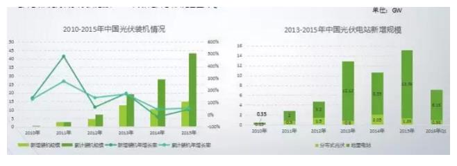 在2010年之前,由于光伏發(fā)電的應(yīng)用成本比較高,市場規(guī)模比較小。從2010年開始,市場的發(fā)展速度非??臁=刂恋?015年底,全球的光伏裝機(jī)容量已經(jīng)達(dá)到了243GW,增長規(guī)模比較快。