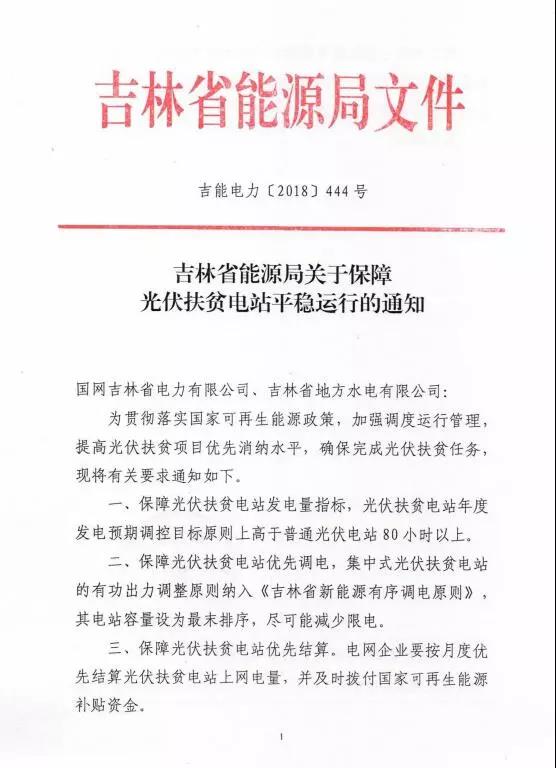 吉林省能源局關(guān)于保障光伏扶貧電站平穩(wěn)運(yùn)行的通知