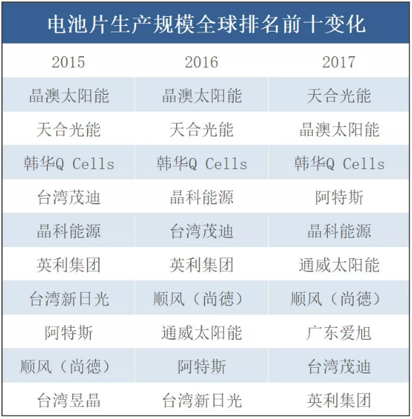 在光伏產(chǎn)業(yè)的中游,組件與電池片環(huán)節(jié)技術(shù)升級(jí)和降價(jià)速度較快。技術(shù)往往掌握在一線大廠的手中,技術(shù)成熟度及產(chǎn)能規(guī)模都是二、三線廠家難以超越的,雖然排名存在波動(dòng),但多是業(yè)內(nèi)知名企業(yè)掌握核心技術(shù)和成本優(yōu)勢(shì)。也因此這一環(huán)節(jié)的“隱形冠軍”最不明顯,下附近年來(lái)組件、電池片的企業(yè)排名及變化。