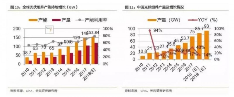 據(jù)CPIA統(tǒng)計,2018年全球組件產能達到152.8GW左右(根據(jù)觀研天下整理CPIA數(shù)據(jù)),中國組件產量為85.7GW,同比增長14.3%,預計2019年可達到93GW。
