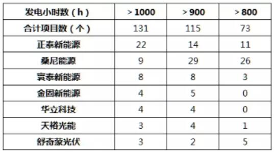 此外,年發(fā)電小時(shí)在900小時(shí)以上的項(xiàng)目中,華立科技、金固新能源和天裕光能分別有9個(gè)、8個(gè)和7個(gè)項(xiàng)目。