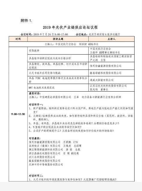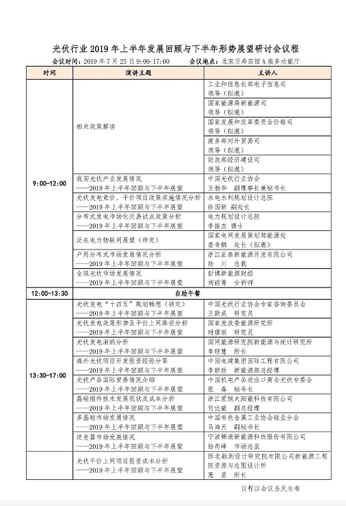 為更好地促進(jìn)行業(yè)交流與溝通,在已經(jīng)召開的九次回顧展望會(huì)的基礎(chǔ)上,中國光伏行業(yè)協(xié)會(huì)擬于2019年7月24-25日在北京召開“光伏行業(yè)2019年上半年發(fā)展回顧與下半年形勢展望研討會(huì)”,并于同期舉辦“2019年光伏產(chǎn)業(yè)鏈供應(yīng)論壇”,邀請行業(yè)主管部門、研究機(jī)構(gòu)、咨詢分析機(jī)構(gòu)和地方行業(yè)組織的領(lǐng)導(dǎo)專家及光伏企業(yè)代表參會(huì),回顧上半年光伏產(chǎn)業(yè)鏈各環(huán)節(jié)發(fā)展情況展望下半年產(chǎn)業(yè)發(fā)展走勢,共同探討光伏產(chǎn)業(yè)鏈供應(yīng)形勢。現(xiàn)就有關(guān)事項(xiàng)通知如下: