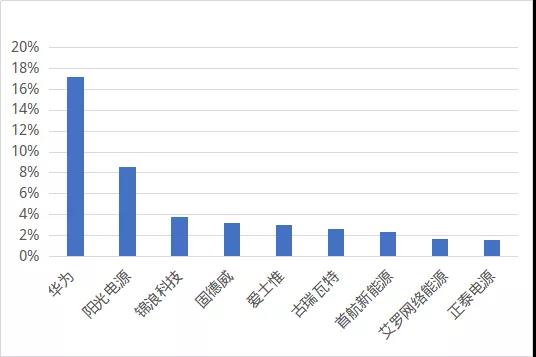 2019年光伏逆變器出口金額占比前九家企業(yè)