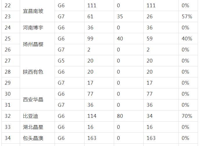 受單晶硅片價(jià)格大跌倒逼,在現(xiàn)金成本紅線徘徊的多晶硅片價(jià)格也跟著下跌,目前多晶硅片市場(chǎng)價(jià)格在1元/片左右,已經(jīng)跌破多晶硅片的現(xiàn)金成本,目前多晶硅片的現(xiàn)金成本在1.2元/片左右(非硅成本0.6元/片,硅料成本0.6元/片),這也意味著目前還在生產(chǎn)的多晶硅片企業(yè)正在虧著現(xiàn)金,因此不少多晶硅片企業(yè)不得不暫時(shí)停產(chǎn)或減少開工鑄錠爐臺(tái)數(shù),那么目前市場(chǎng)哪些鑄錠企業(yè)停產(chǎn)了呢?哪些鑄錠企業(yè)還在生產(chǎn)?還在生產(chǎn)的鑄錠企業(yè)開爐情況如何?光伏新聞特意做了一個(gè)調(diào)查,光伏新聞不完全統(tǒng)計(jì)的結(jié)果為:目前全行業(yè)鑄錠爐臺(tái)數(shù)量為5266臺(tái),開工爐臺(tái)數(shù)量為1454臺(tái),鑄錠爐平均開工率為28%。具體各鑄錠企業(yè)開工情況如下表所示: