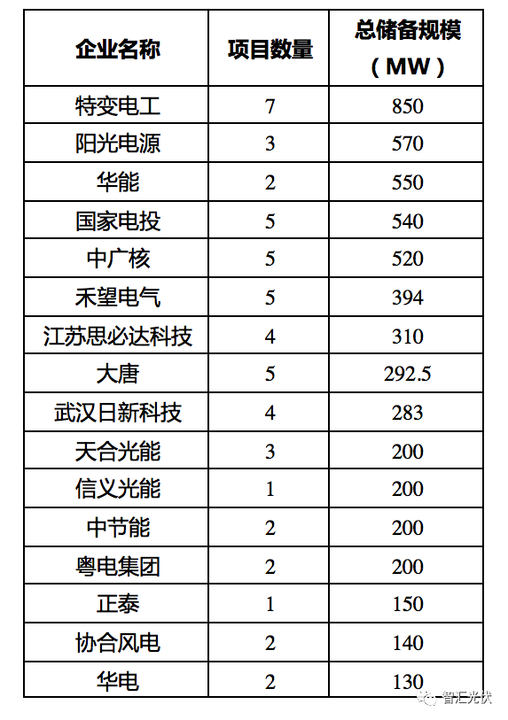 其次為陽(yáng)光電源、華能、國(guó)家電投、中廣核,總儲(chǔ)備規(guī)模均超過(guò)500MW。