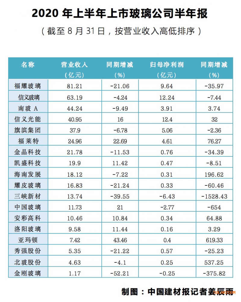 8月如期結束,各大上市玻璃公司也曬完了自己的半年報“成績單”。我們選取了18家在行業(yè)內比較有代表性的玻璃行業(yè)上市公司,逐一翻閱了它們的半年報。令人欣喜的是,玻璃行業(yè)迅速擺脫了新冠肺炎疫情的不利影響,在抓好疫情防控的同時有序推進生產(chǎn)經(jīng)營,大多數(shù)上市公司業(yè)績表現(xiàn)良好。
