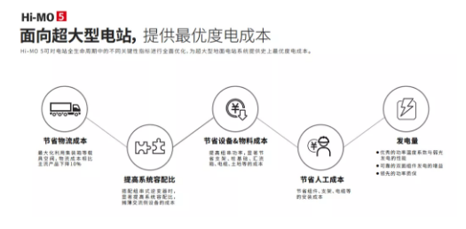 按照市場的選擇邏輯,我們把基于182尺寸的Hi-MO 5與市面上主流的其他兩款高功率產(chǎn)品做了對比。經(jīng)測算,Hi-MO 5首先在組件功率和轉(zhuǎn)換效率上明顯高于其他組件,以100MW的項目裝機(jī)量為例,使用Hi-MO 5 的535W組件在三者中系統(tǒng)綜合成本最優(yōu),較其他大功率組件單瓦成本降低了3~4分,100MW的電站項目將帶來成本節(jié)省約300~400萬元。此外,Hi-MO 5的高功率和高效率還帶來土地占用量和組件使用量的減少,尤其在土地資源的占用方面,Hi-MO 5較其他兩款組件可節(jié)省20~40畝的土地資源。這些通過Hi-MO 5而獲得的“額外”收益將使電站后期的運(yùn)維成本明顯降低。絕佳的度電成本優(yōu)勢,讓隆基的組件新品Hi-MO 5在各項測評中“C位”出道,成為超大型地面電站的不二之選。