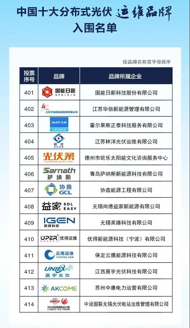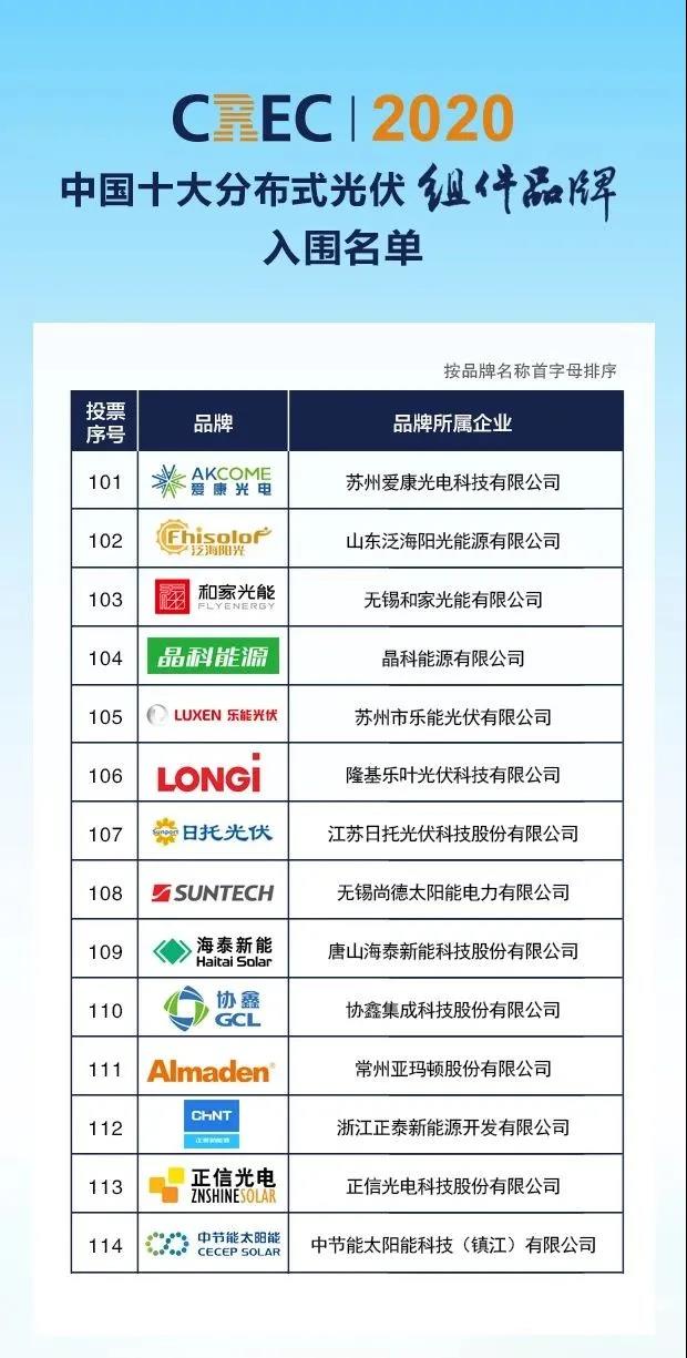 本次評(píng)選活動(dòng)共設(shè)“中國十大分布式光伏組件品牌”、“中國十大分布式光伏逆變器品牌”、“中國十大分布式光伏系統(tǒng)品牌”、“中國十大分布式光伏運(yùn)維品牌”四大獎(jiǎng)項(xiàng),入圍品牌后續(xù)將通過網(wǎng)絡(luò)投票、專家評(píng)審和客戶打分最終產(chǎn)生獲獎(jiǎng)名單,評(píng)選結(jié)果將于今年11月4-6日在無錫舉辦的“第十二屆中國(無錫)國際新能源大會(huì)暨展覽會(huì)”的頒獎(jiǎng)典禮上揭曉。